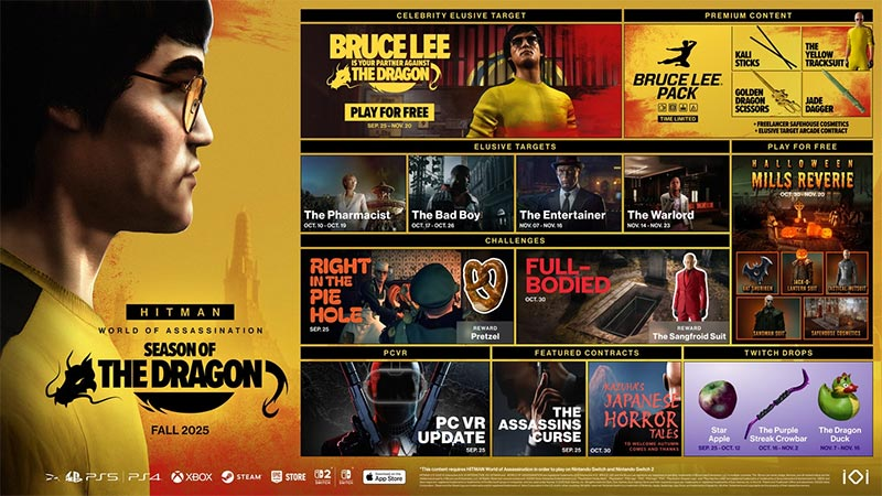 IO Interactive is honoring Bruce Lee’s 85th anniversary with a special HITMAN World of Assassination event available for two more weeks—ending Thursday, November 20th. Players can take on the Bruce Lee Elusive Target mission or purchase the Bruce Lee Pack for permanent access, which also includes a new suit inspired by the martial arts icon.